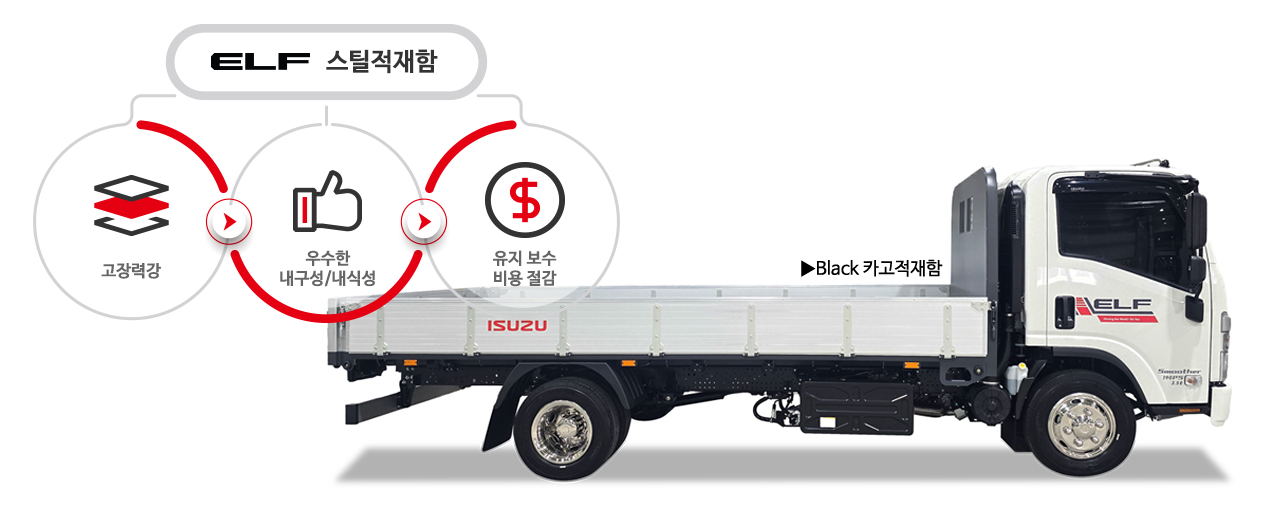 2.5톤 엘프 저상트럭은 적재함이 낮아 상.하차가 편리하며, 안정적으로 더 많은 화물을 적재할 수 있어 운송사업의 수익성을 높여드립니다.