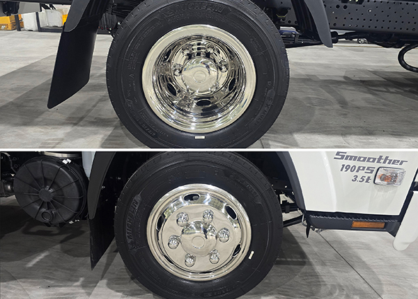 현재 국내에서는 엘프 트럭은 3.5톤급과 2.5톤급의 두 가지 차종을 판매하고 있습니다. EURO6 Step-D 기준을 충족하는 동시에 최고 출력 190ps, 최대 토크 52kg·m로 동급 최강의 엔진 출력을 자랑하는 이스즈 4HK1-TCS 4 기통 디젤 엔진을 장착했습니다. 또한 운전자는 전자제어식 6단 자동화 변속기 혹은 6단 수동 변속기 두 가지 사양중 본인에게 적합 한 변속기를 선택할 수 있습니다.