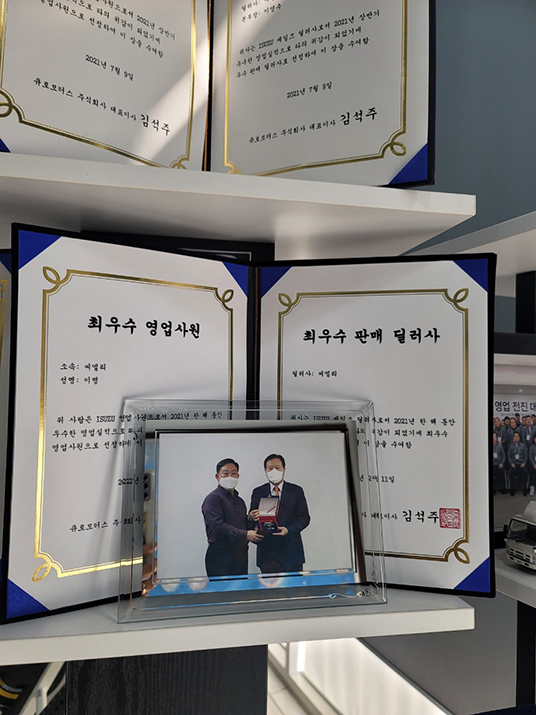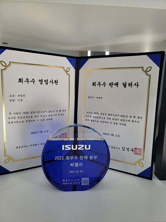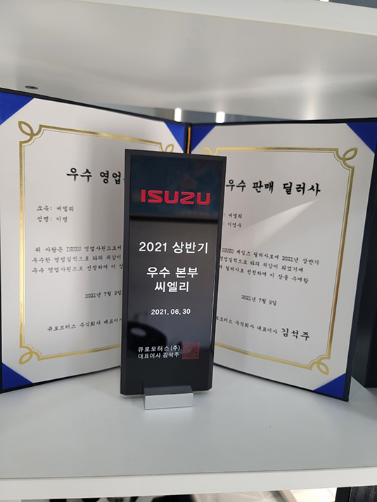 20년에 이어 21년에도 이스즈 한국 최고 판매 지점 및 영업 사원이 되었습니다. 전 세계 60만대가 판매되고 있는 차량이라는 자부심도 생기고, 제가 해외 다니면서 어디서나 볼 수 있었던 '이스즈 트럭'을 한국에서 판매하여 최고 영업점까지 되니 감회가 남다르군요.