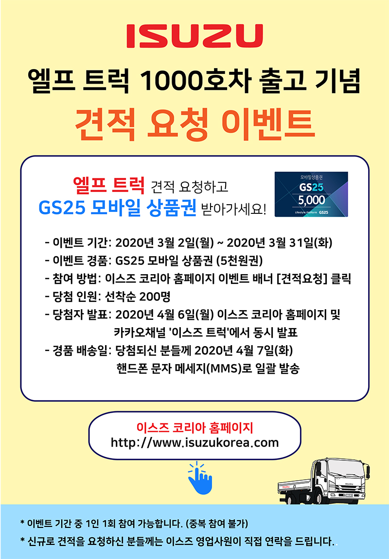 엘프 트럭 1000호 출고 기념 견적 요청 이벤트