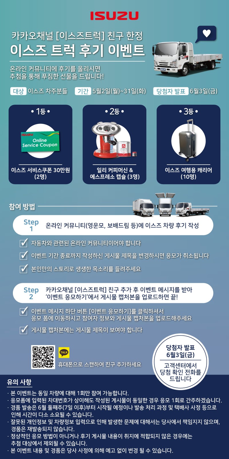 카카오채널 [이스즈트럭] 친구 한정 이스즈 트럭 후기 이벤트 개최